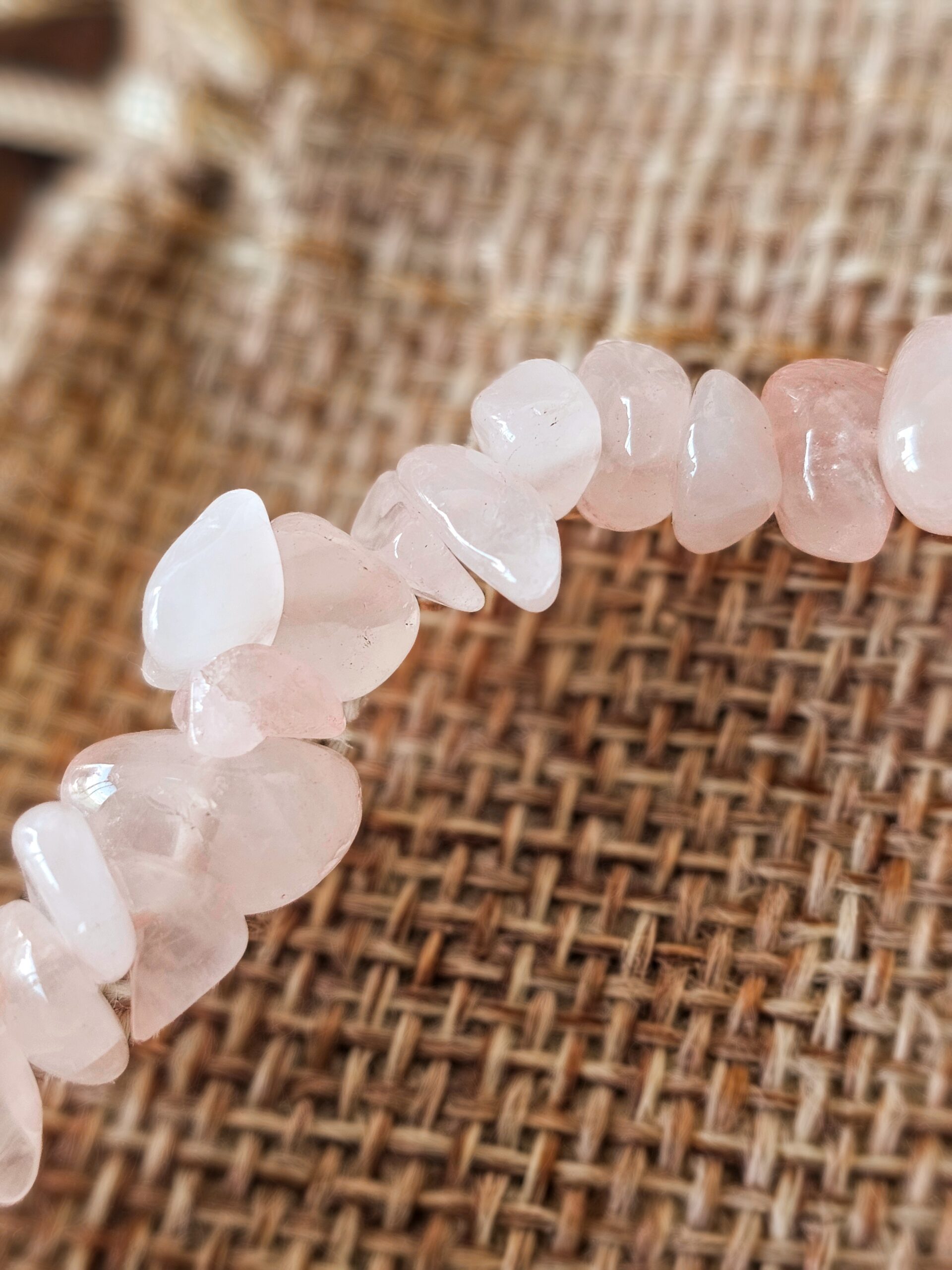Chaque bracelet en quartz rose est composé de fragments bruts, authentiques et uniques, façonnés naturellement par le temps et la Terre. Il émet une vibration douce mais puissante, idéale pour apaiser les tensions émotionnelles, dissiper les peines passées et t’accompagner dans un chemin de réconciliation intérieure. Porter ce bracelet, c’est se rappeler que l’amour commence par soi, et qu’on mérite d’être aimé sans condition.